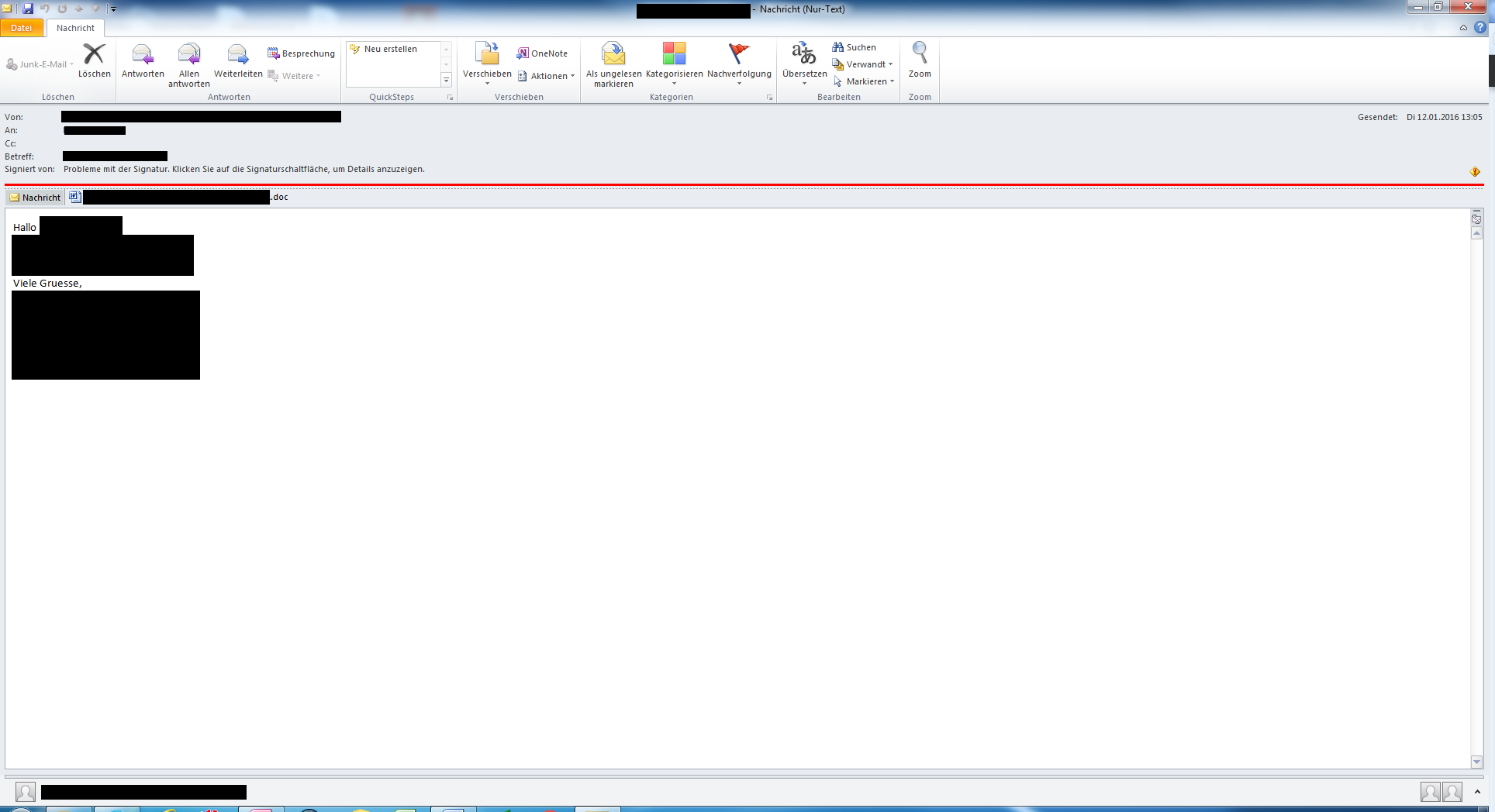 Ich kann meinen Outlook-Mailpartner zwar informieren, aber das wird wahrscheinlich wenig nutzen, da es ein Auftraggeber/Institution ist, dem/der ich nicht vorschreiben kann, wie er/sie E-Mails zu versenden hat.