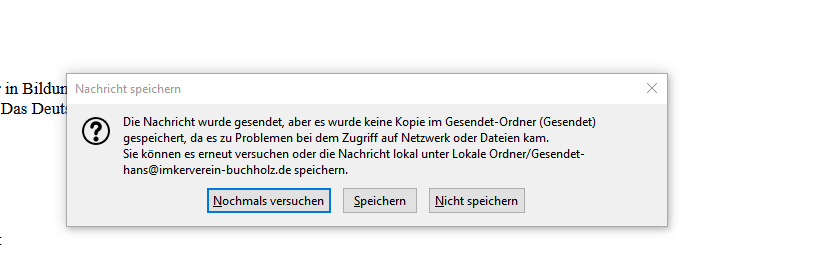 Versandte Mails werden seit einigen Tagen nicht mehr im Ordner "Gesendet" abgelegt.