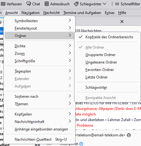 Hallo, aus mir unbekannten Gründen hab ich mir mein Thunderbird-Profil so vermurkst, daß zwar noch alle Mails vorhanden sind, aber die Struktur der darin enthaltenen Mail-Ordner total daneben geraten ist. So erscheinen beispielsweise die Ordner Garagen und Fotografie als Unterordner von Familie, wo sie definitiv nicht hingehören.