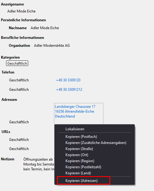 Ich bearbeite bzw. vervollständige mein Kontakte, welche ich in Eile unterwegs abgelegt habe, grundsätzlich im Thunderbird.