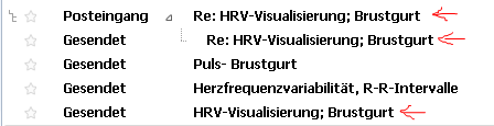 Die Sortierung ist nach Datum (absteigend). Somit ist der unterste Eintrag das allererste Mail des Fadens.