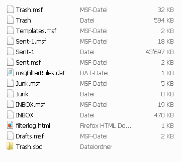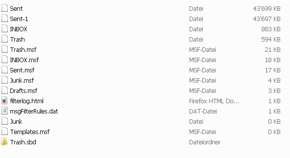 - keine Mbox- Datei "Drafts" drin ist. (Weshalb nicht? Vielleicht weil ich noch gar nie einen Entwurf in diesem Konto erstellt habe?)
