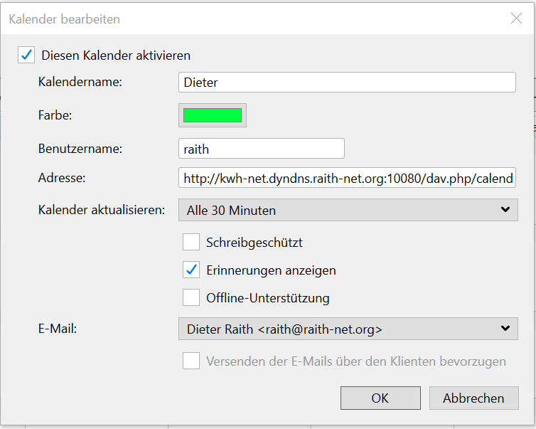 Ich wollte mit dem Browser dien Admin Zugang zum Kalenderserver aufrufen.