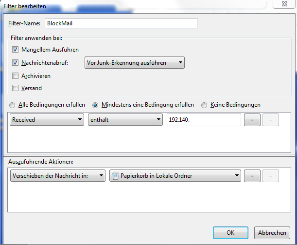 Leider gibt es keine Fehlermeldung vom Thunderbird oder ich weiss nicht, wo man