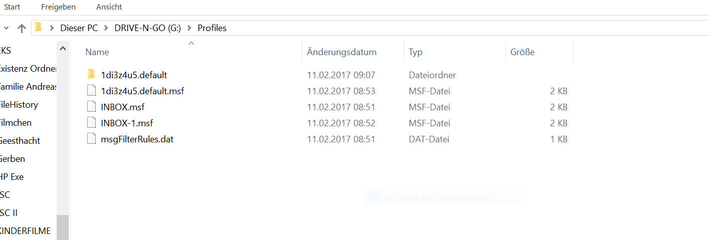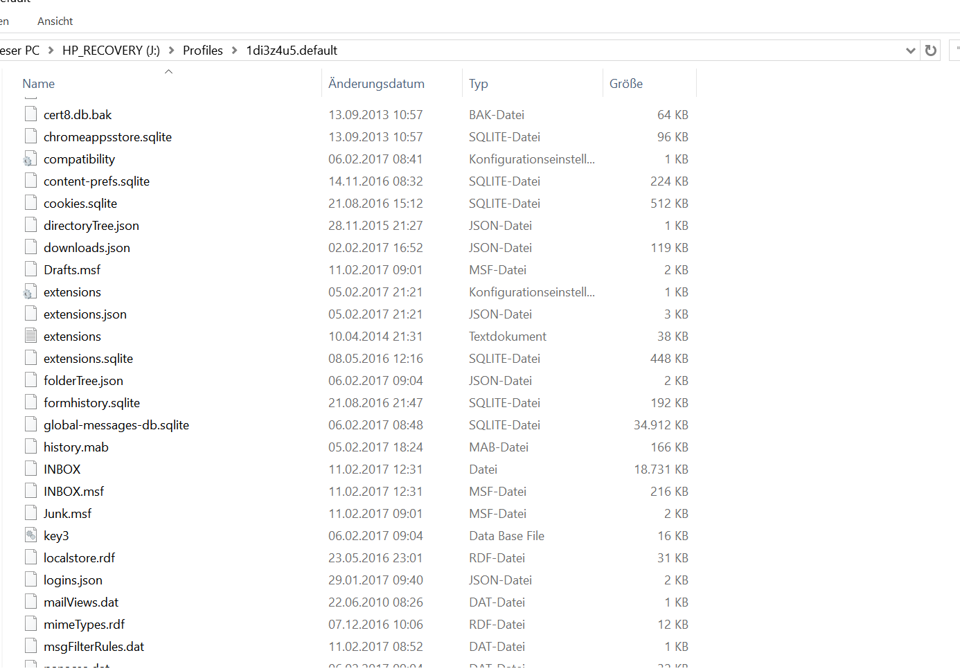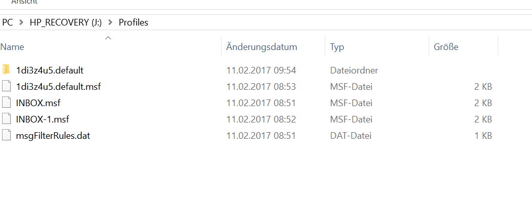 1di3z4u5.default und diverse Inbox Dateien. Ich denke aber das ich das neu erstellte Profil in die alten Profile gespeichert habe und damit die alten überschrieben sind.