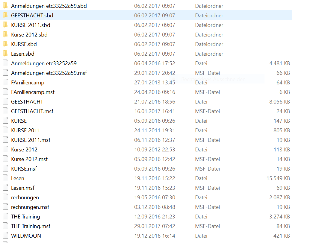 Ich habe auch Kopien von meinem alten Profilordner, habe den Pfad in Servereinstellungen auch eingestellt aber es kommen bloss die letzten Mails und die ganze Ordnerleiste nebst Adressen bleibt verschwunden.