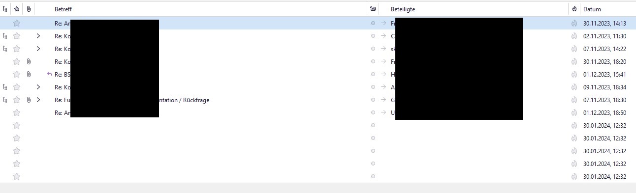 Wenn ich über die Suchfunktion gehe (Strg+Alt+F) findet man den Mailverlauf wie zuvor, aber LEER.