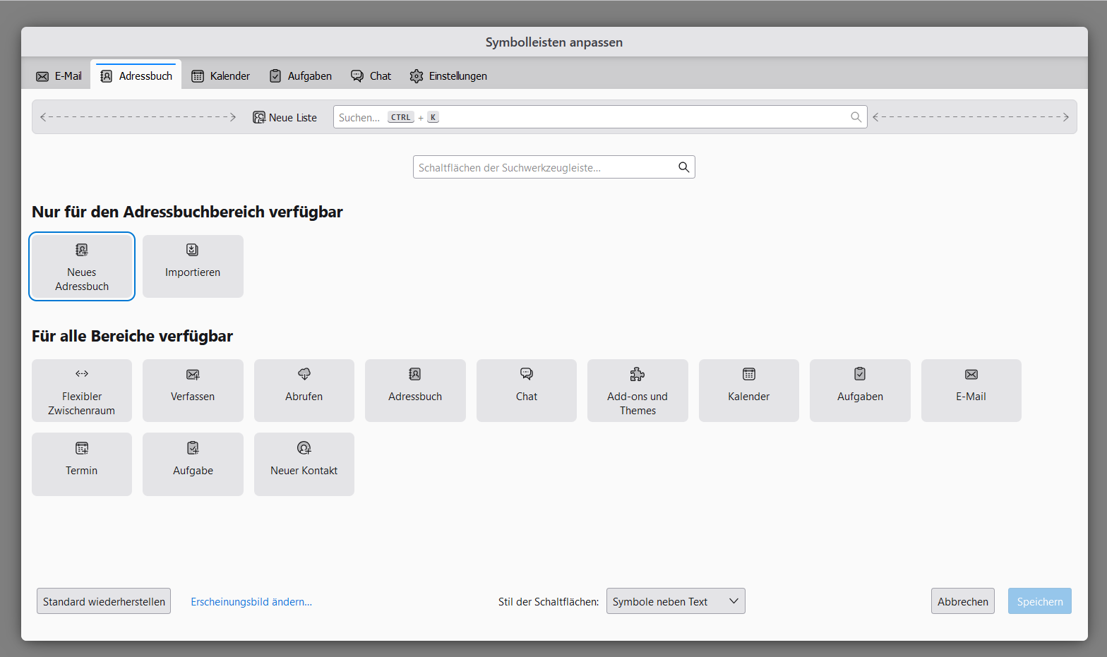 im Fensterlayout habe ich "Klassische Ansicht" und "Konten/Ordnerliste" selektiert.