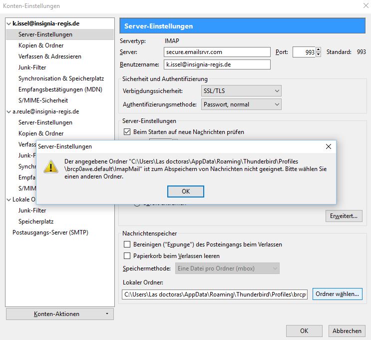 Fakt ist, kein anderes mail-Programm hat jemals solche Probleme gemacht wegen irgendeinem update. Daher entscheiden wir uns jetzt für eine andere Lösung.