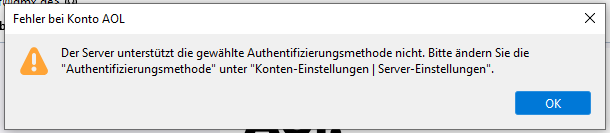 Beim Abruf noch immer das gleiche Problem wie am Anfang. Auch nach umstellen auf "Passwort, normal" geht es nicht. Siehe Meldung: