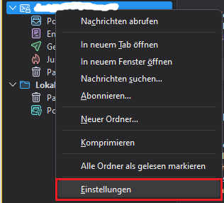 Dann bekommt man den Ordner in Thunderbird zweimal angezeigt: