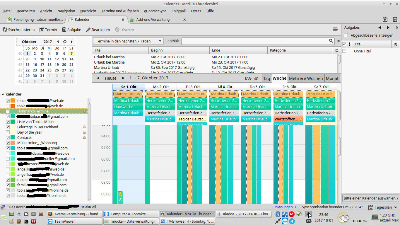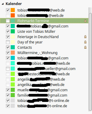 gerade richte ich mir mein Betriebssystem ein und in Folge dessen auch Thunderbird mit Lightning. Das meiste klappt auch, nur mit weiteren Kalendern von Web.de gibt es Probleme. Wie ihr auf dem angehängten Screenshot sehen könnt, sind meine weiteren Web.de Kalender nicht aktiviert. Zwar kann ich in den Eigenschaften den Hacken setzten, doch der Kalender wird nicht aktiviert.