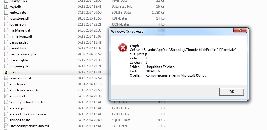 In der Datei prefs.js sind alle Schalgwörter korrekt hinterlegt.
