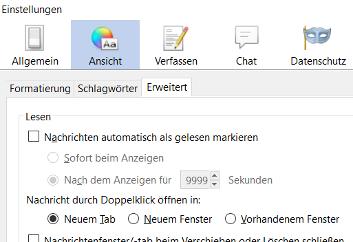ich möchte Nachrichten generell NICHT automatisch als gelesen markieren: