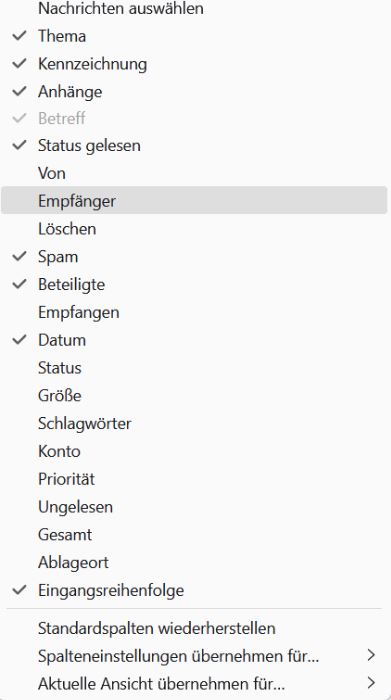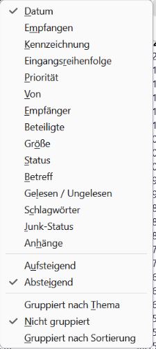 • Router-Modellbezeichnung (bei Sende-Problemen) Fritz 7590Die Mail Eingangsreihenfole ist wahllos. Zeitweise stimmt die Reihenfolge Ich meine es fehlt der Pfeil nach oben. Ich blicke es einfach nicht mehr.