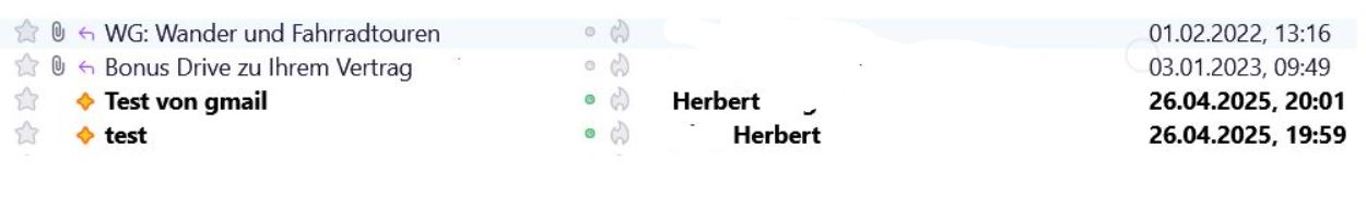 Wähle ich mich igendwo ein kommt die Bestätigung mitten in andern Mails, siehe Anhang