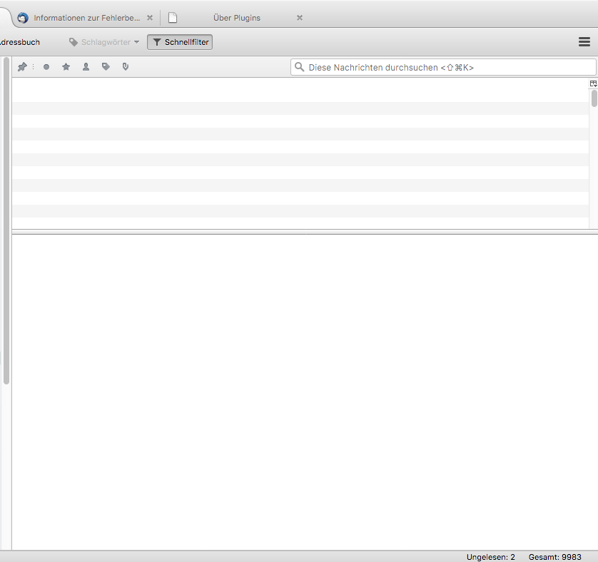 Auf dem Screenshot sieht man, dass man nichts sieht. Jede Zeile representiert eine mail. Wenn ich drauf klicke erscheint auch ein Inhalt...