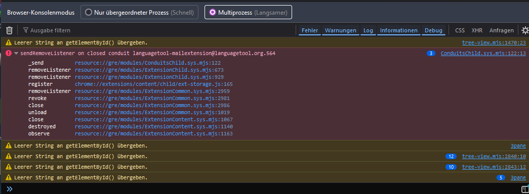 Evtl. mal die Fehlerkonsole (STRG-SHIFT-J) öffnen und den Vorgang reproduzieren.