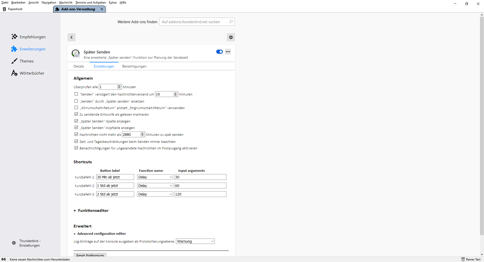 Clicac: "Ich befürchte z.B. bei Quicktext, aber auch bei den anderen AddOns (nutze exzessiv CalDav Kalender) meine Settings zu verlieren... Teilweise funktionieren die Addons auch nicht, so dass ich keine Settings exportieren kann (z.B. bei Quicktext)."