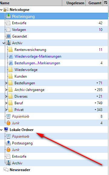 Und so nebenher: "Lokale Ordner" ausblenden/deaktivieren -