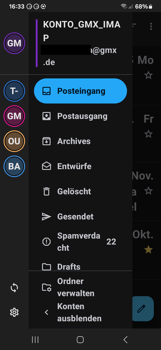 Das hatte ich bei Thunderbird auch so eingestellt doch hat es nicht funktioniert, denn bei Einrichtung des Kontos in K9 ist mir aufgefallen, dass uralte Nachrichten angezeigt werden.