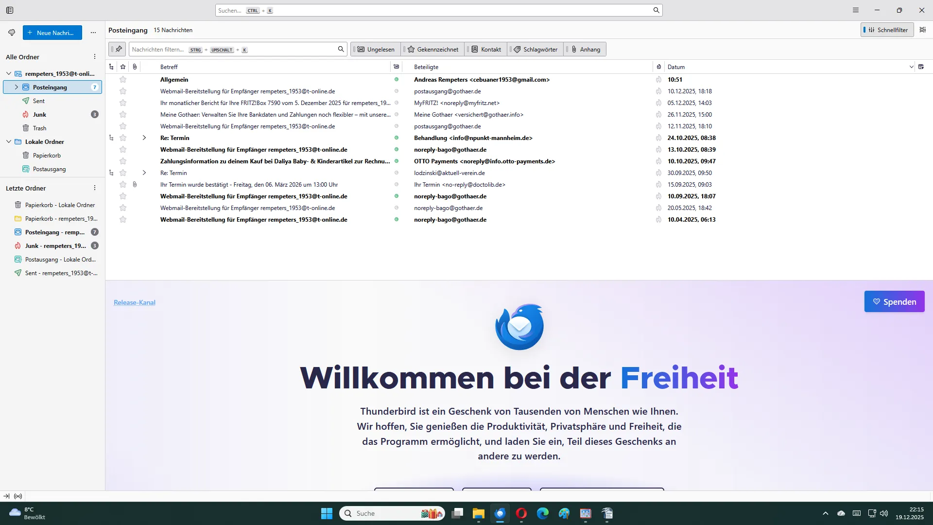 Kontakte, wieder wie immer in der Taskleiste bei Thunderbird. Dies
