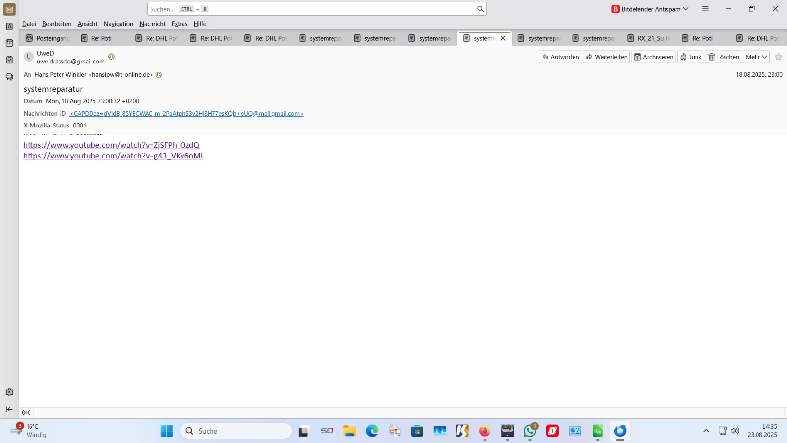 Dann habe ich Incredi installiert und es hatte die Mails noch