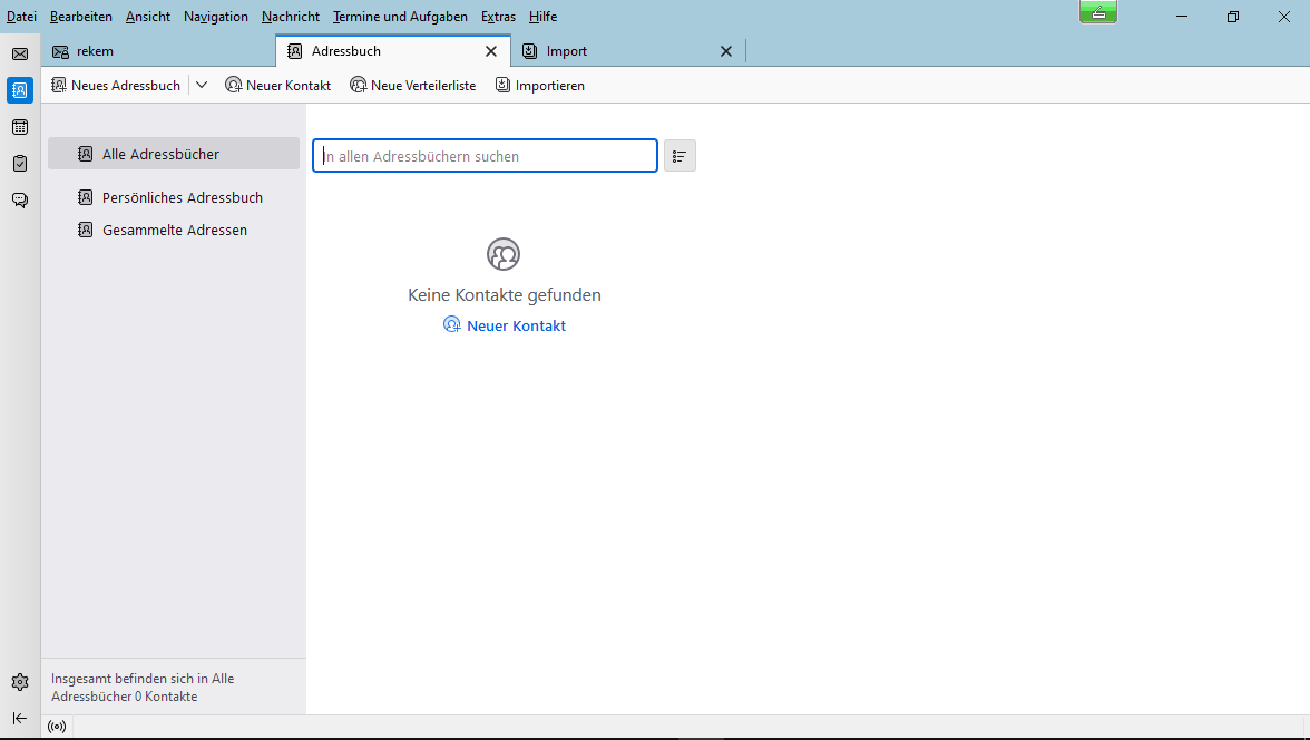 Die MailOrdner werden angezeigt das Adressbuch aber nicht (s.A.)