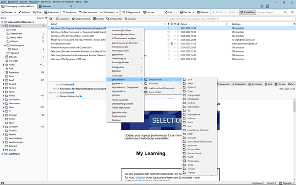 Bezüglich add-on QuickFolders, mit diesem wurde ich nicht wirklich glücklich.