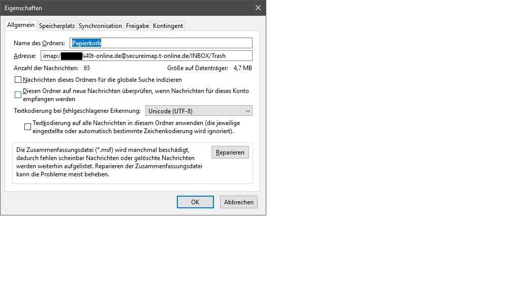Die anderen Papierkörbe bei gmx und web.de (diese accounts angelegt in thunderbird) funkt. ja...nur der bei t-online nicht.