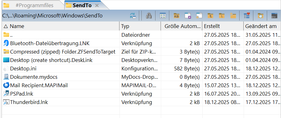Die Einträge in deiner Registry sind OK, das haben wir gerade in einer persönlichen Konversation festgestellt. Allerdings scheint dein "SendTo"-Link defekt zu sein, wie es dein Bild aus dem Explorer zeigt:![]()