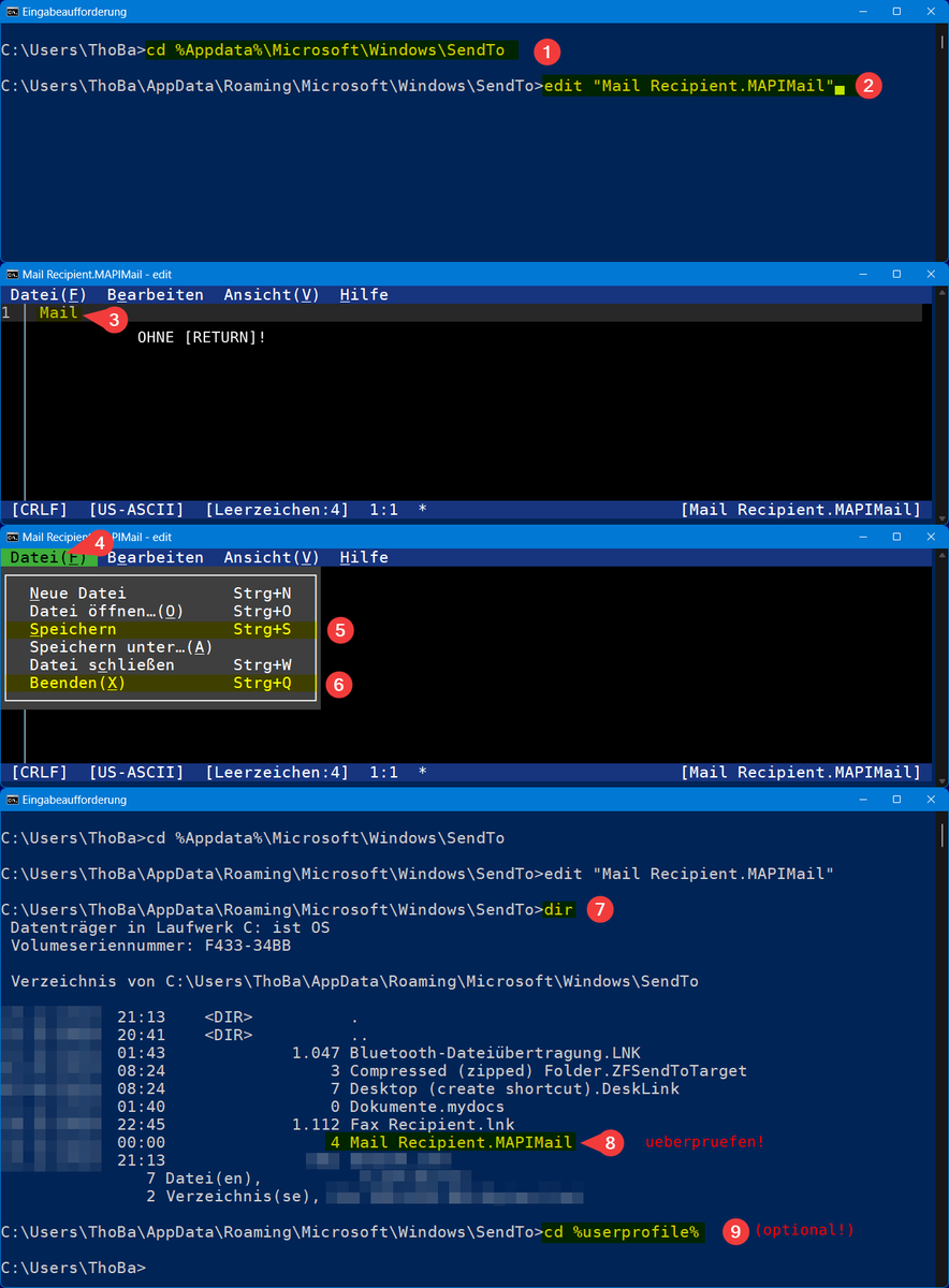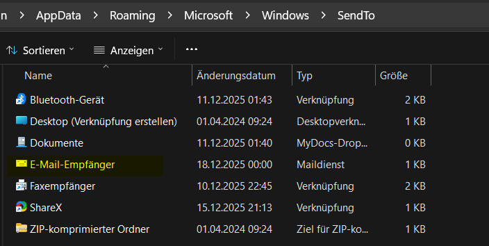 2) Mail Recipient.MAPIMail im SendTo-Ordner greift nicht