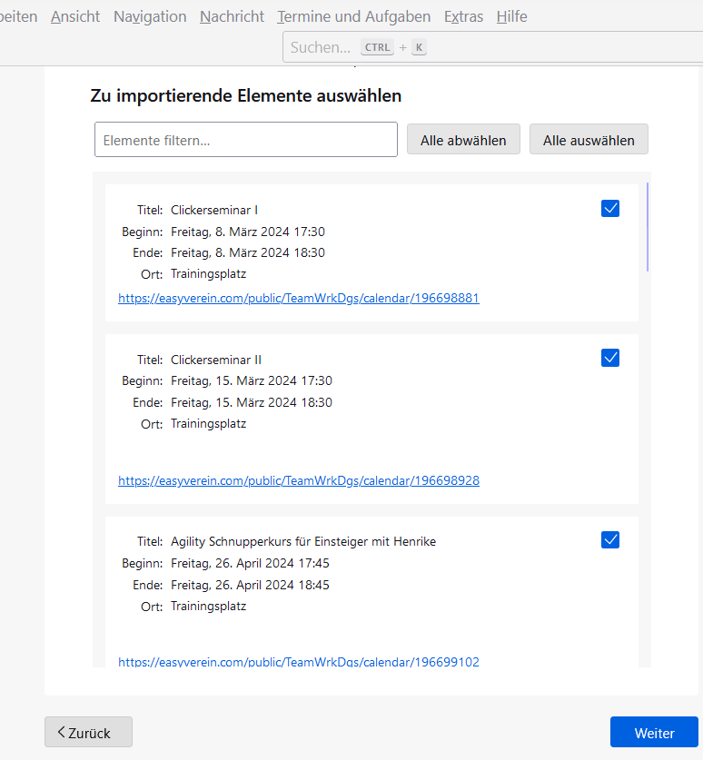 DTEND:NoneNachdem alle Events mit dem Fehleintag DTEND:None entfernt wurden, ließ sich die .ics lesbar Importieren.