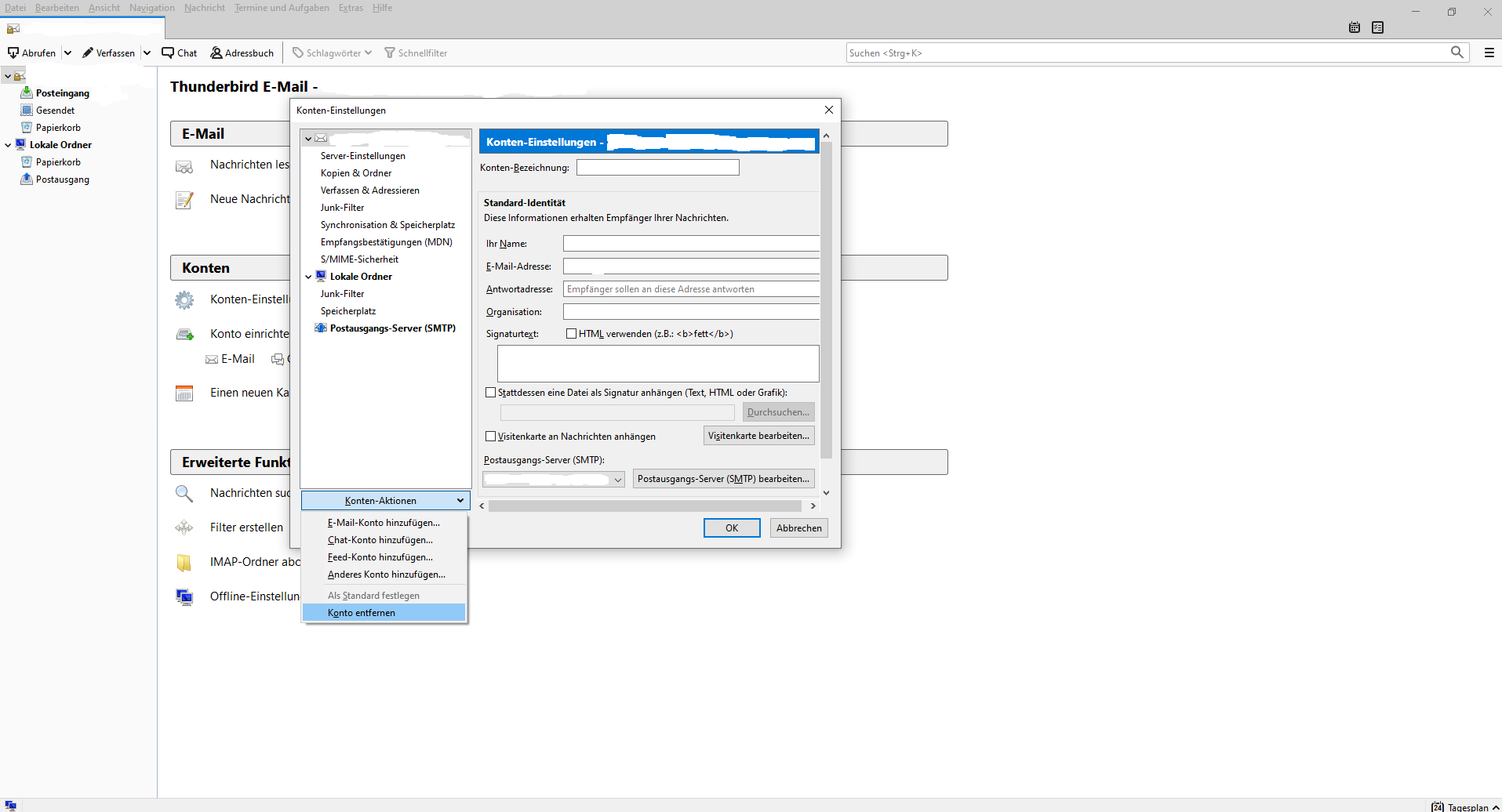 Alls erstes hab ich TB deinstalliert, danach habe ich im Explorer die zwei übrigen TB-Ordner manuell gelöscht, die noch übrig waren. Gefunden hab ich die unter C:\Users\...\AppData dort dann im Local und Roaming Ordner. Ich bin mir jetzt nicht sicher aber die Profile waren im Roaming Ordner!?