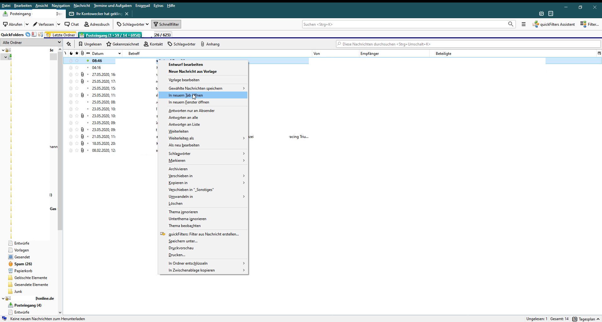 Jetzt wird beim Doppelklick plötzlich die eingehende Mail ganz normal als Mail zum Lesen angezeigt!!!!!