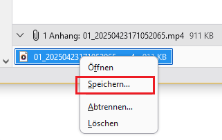 Speichern eines Anhangs (auch eines PDF-Anhangs) geht so: