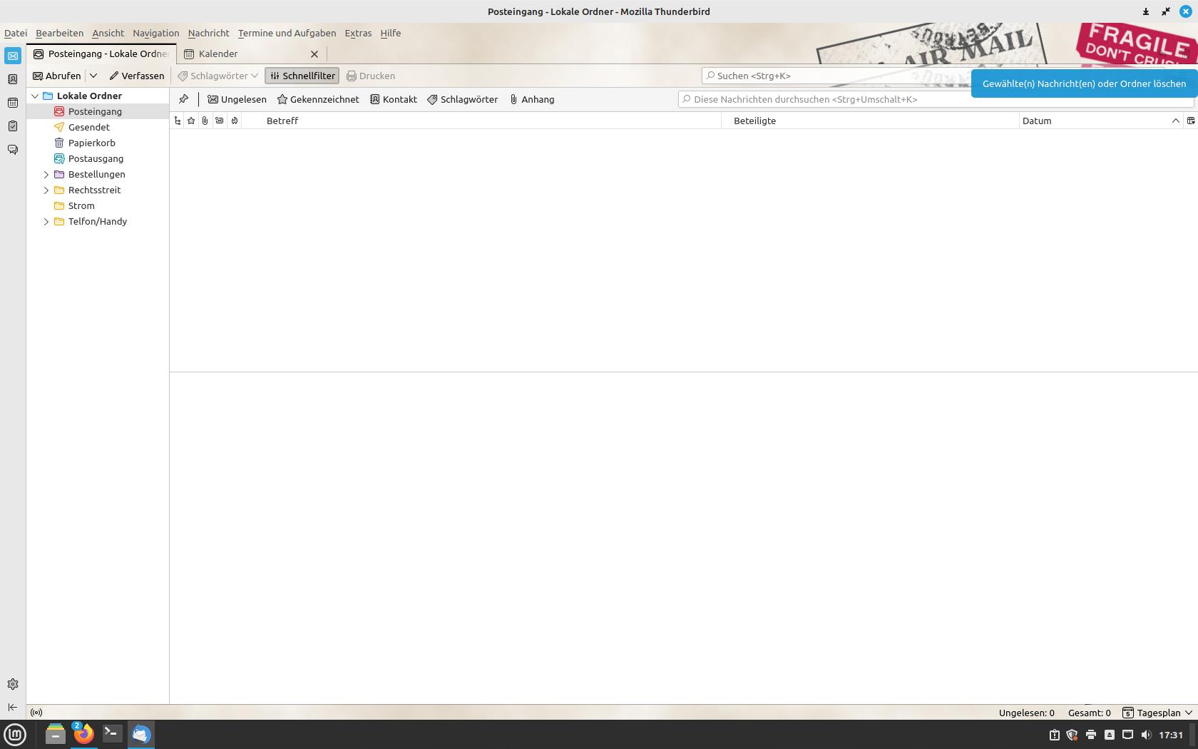 ich benutze jetzt ganz neu Thunderbird 102.14.0 unter Linux Mint.