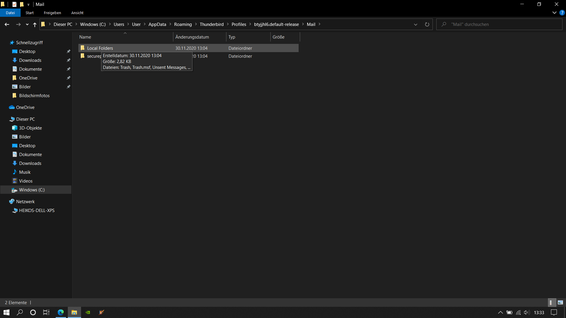 Das habe ich bereits schon versucht. Bei dieser Vorgehensweise fehlen Ordner mit gespeicherten Mails im lokalen Verzeichnis, ich kann’s aber nochmal versuchen