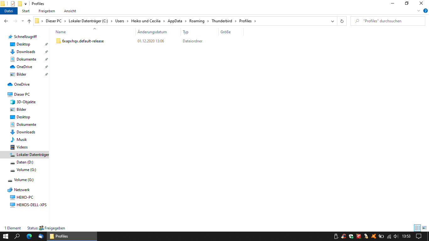 Was meinst du mit Arbeitskopie von TB 68.12.1 von der Quell-SSD :/ Bisher habe ich von der Quell-SSD auf der TB immer noch ohne Auffälligkeiten funktioniert, aus C:\Users\%user%\AppData\Roaming\Thunderbird\Profiles