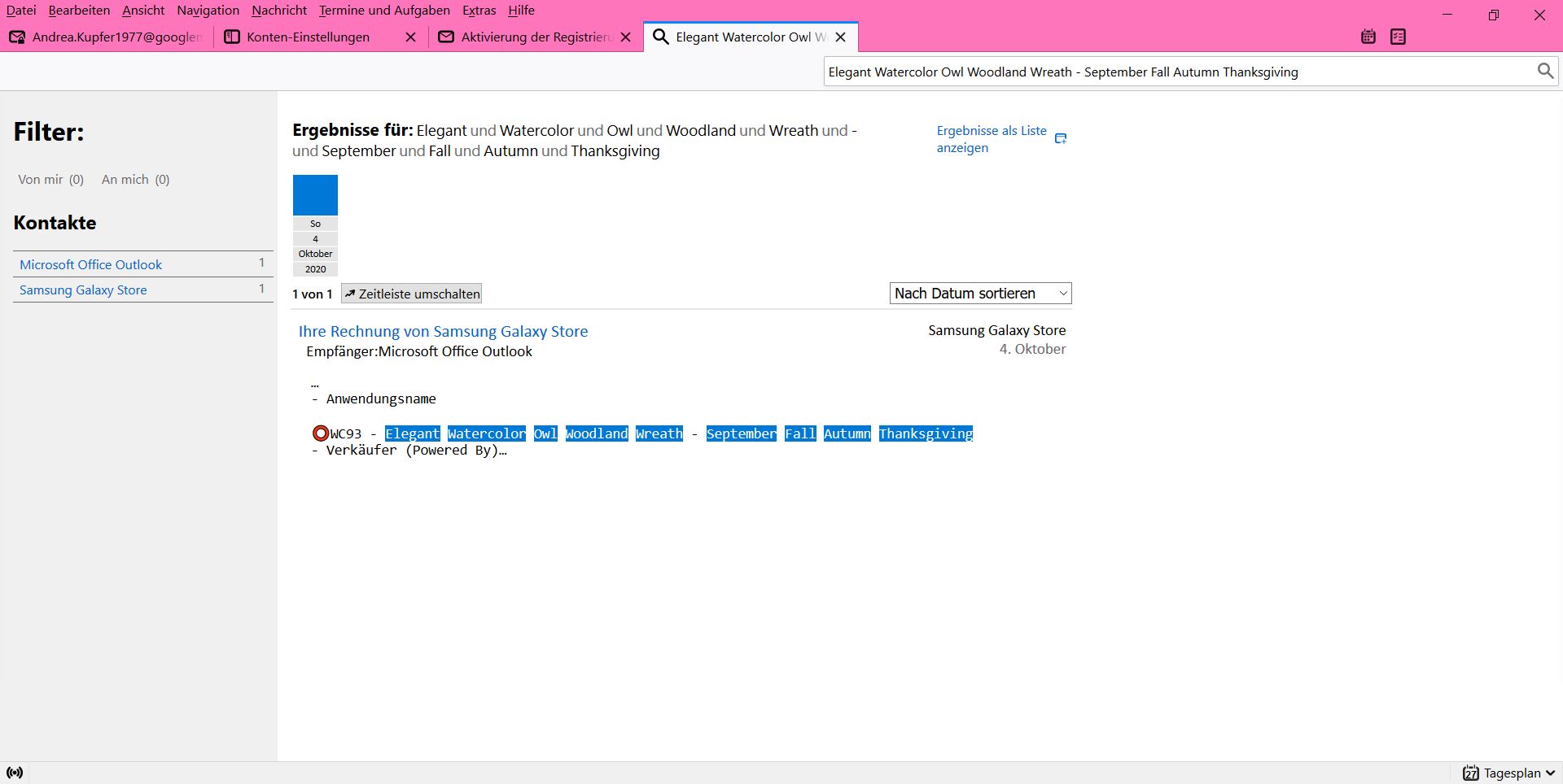 Ich habe damit viele Emails online gespeichert werden können, eine Erweiterung meines Speicherplatzes mit einem Abo mit Google One.