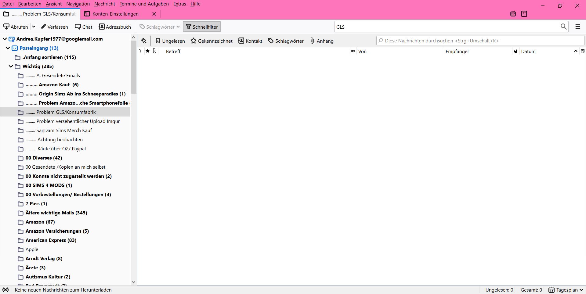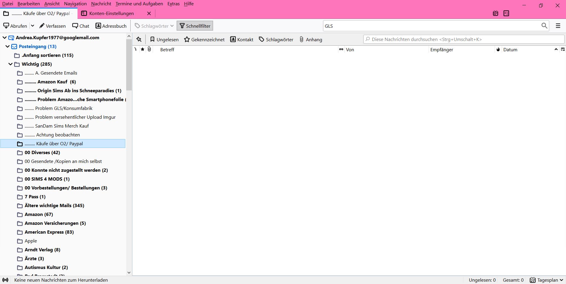 Ich dachte ich verschiebe die ganzen Emails in Unterordner