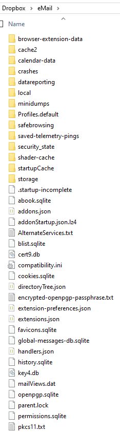 Der "rootordner" meiner Emaildateien Den habe ich in die Dropbox gepackt, damit ich auch auf allen Geräten auf meine Adresslisten und meinen lokalen Ordner zugreifen kann):