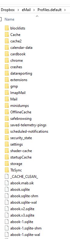 Ich habe Thunderbird auf meinem Surface installiert und da ist mein Speicherplatz begrenzt. Mein Thunderbird-Ordner ist viel zu groß, zurzeit mehr als 4GB und ich vermute, da kann einiges weg. Da ich mich bei der Installation möglicherweise mal vertan habe, ist jetzt einiges doppelt. In meinen Email-Ordner gehört ja wohl auf jeden Fall der Ordner "Profile.default". Die Ordner, die ich im Ordner "Profiles.dafault" finde, finde ich aber In diesem übergeordneten Ordenr nochmal (zumindest mit dem gleichen Namen aber älteren Datums) nochmal und ebenso die Dateien, die sich auch im Ordner "Profile.default" finden - dort sind aber einige mehr, ich nehme an, das sind Adressbücher die ich neu angelegt oder geändert habe. Kann ich diese Doubletten im Ordner Email löschen? Was gehört in den Ordenr in dem sich "Profiles.default" findet noch?
