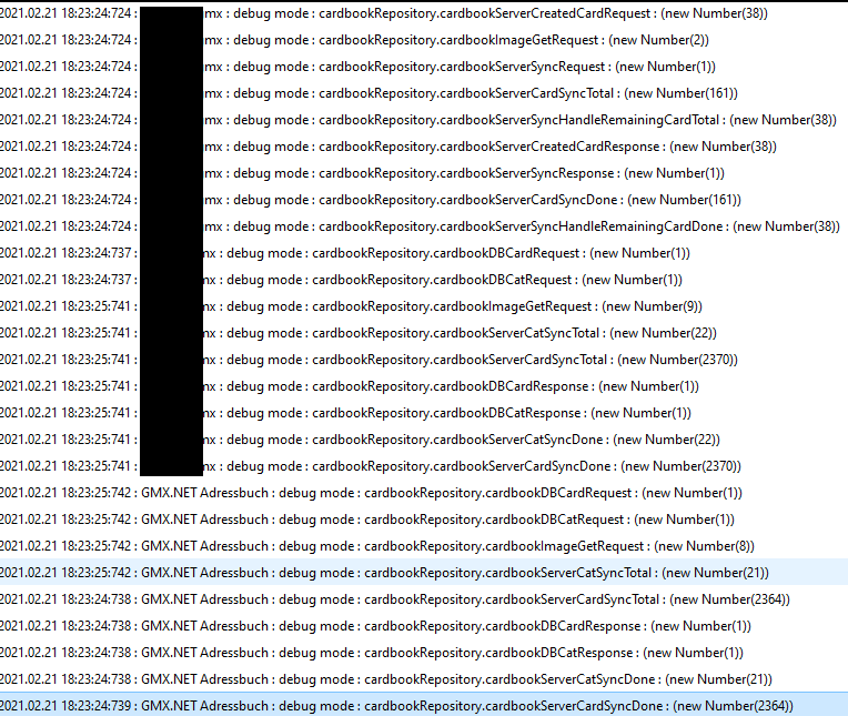 Ergänzung: die Kontakte mit Fotos bzw. Foto-links führten zu Fehlermeldungen in der log-Datei