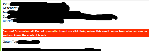 Ja genau, soll auch als Warnung vor Phishing dienen. Allerdings funktioniert das mit der .css Datei bei mir nicht. Habe es gerade getestet aber passiert nichts. Also es soll generell für alle externen Mails eine Warnung angezeigt werden.