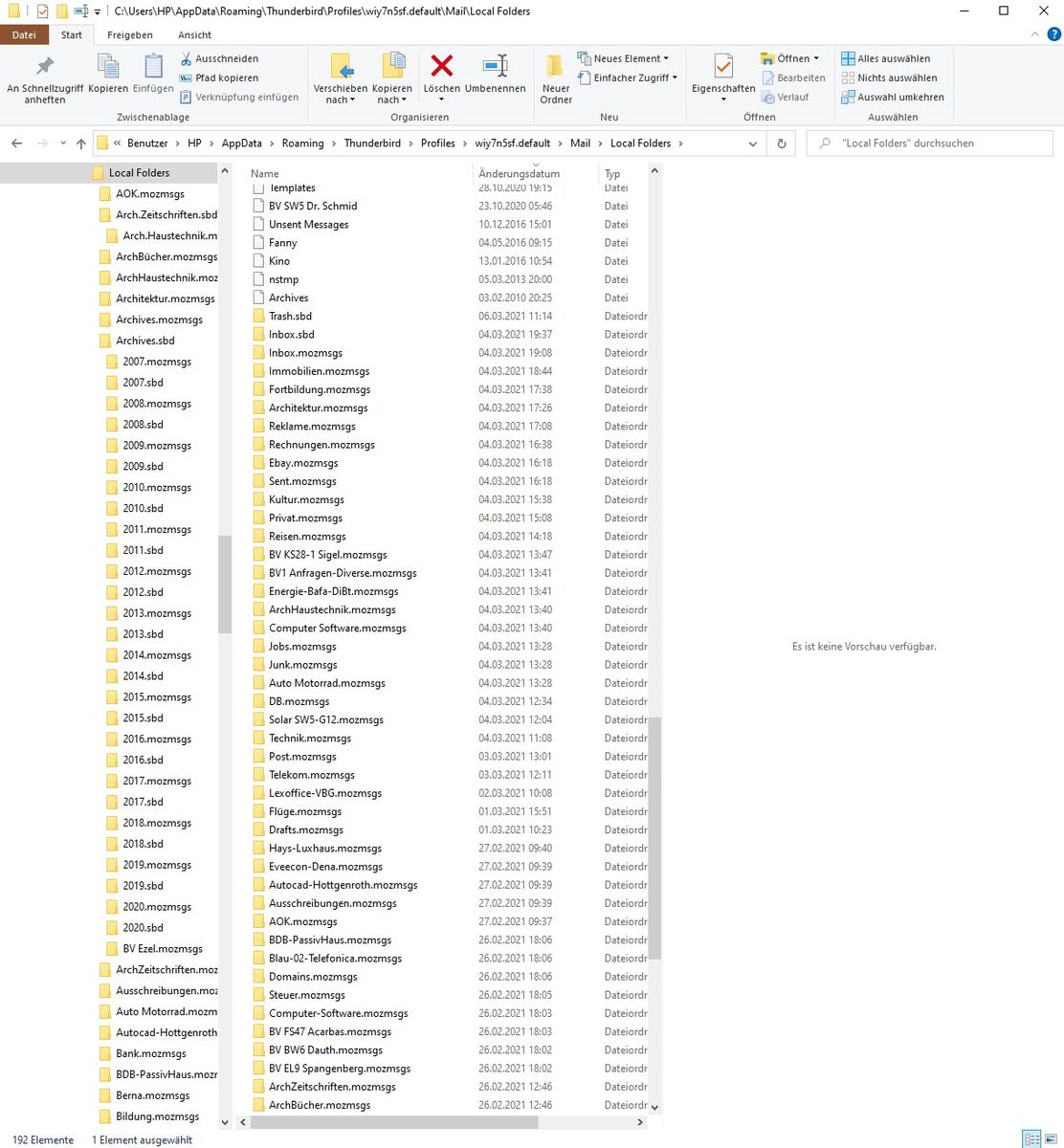 Wenn ich in meinen Profilordner Local Folders unter mail aufrufe finde ich folgendes Bild: