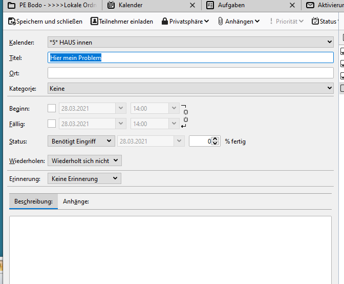 Diesmal habe ich die Aufgabe neu mit Kategorie angelegt mit "Speichern und schließen" abgeschlossen und für den Screenshot neu aufgerufen, die nicht mehr vorhandene Kategorie ist mir dann durchgegangen.