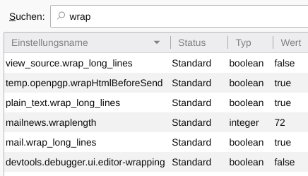 Der Eintrag mailnews.wraplength steht auf 72 Zeichen.