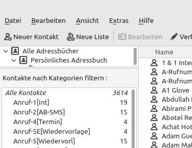 unter Linux wird im Adressbuch oben links nur ein kleiner Spalt angezeigt, wo die einzelnen Adressbücher sind.
