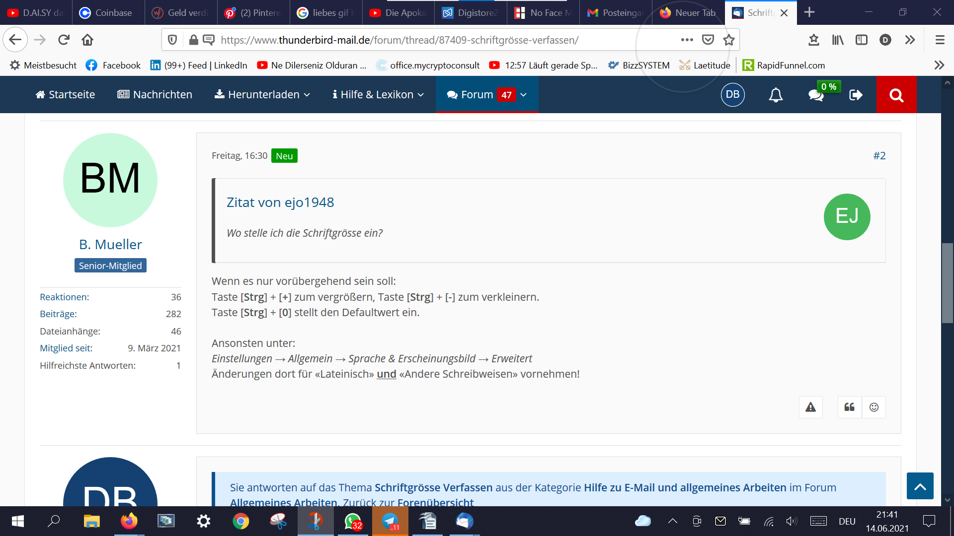 Beim Öffnen von Thunderbird geht unter allen E-mails gleich eine E-mail auf. Wie kann man das beheben? Thunderbird Version ist 78.11.0 Betriebssystem Windows_NT 10.0 Antivirus Software ist Microsoft Defender Antivirus. Firewall ist Windows Firewall. Server Typ ist IMAP. Ich hatte keine andere Wahl, außer diesen Beitrag neu zu bearbeiten, weil ich keine Stelle gefunden habe um einen Beitrag zu erstellen.